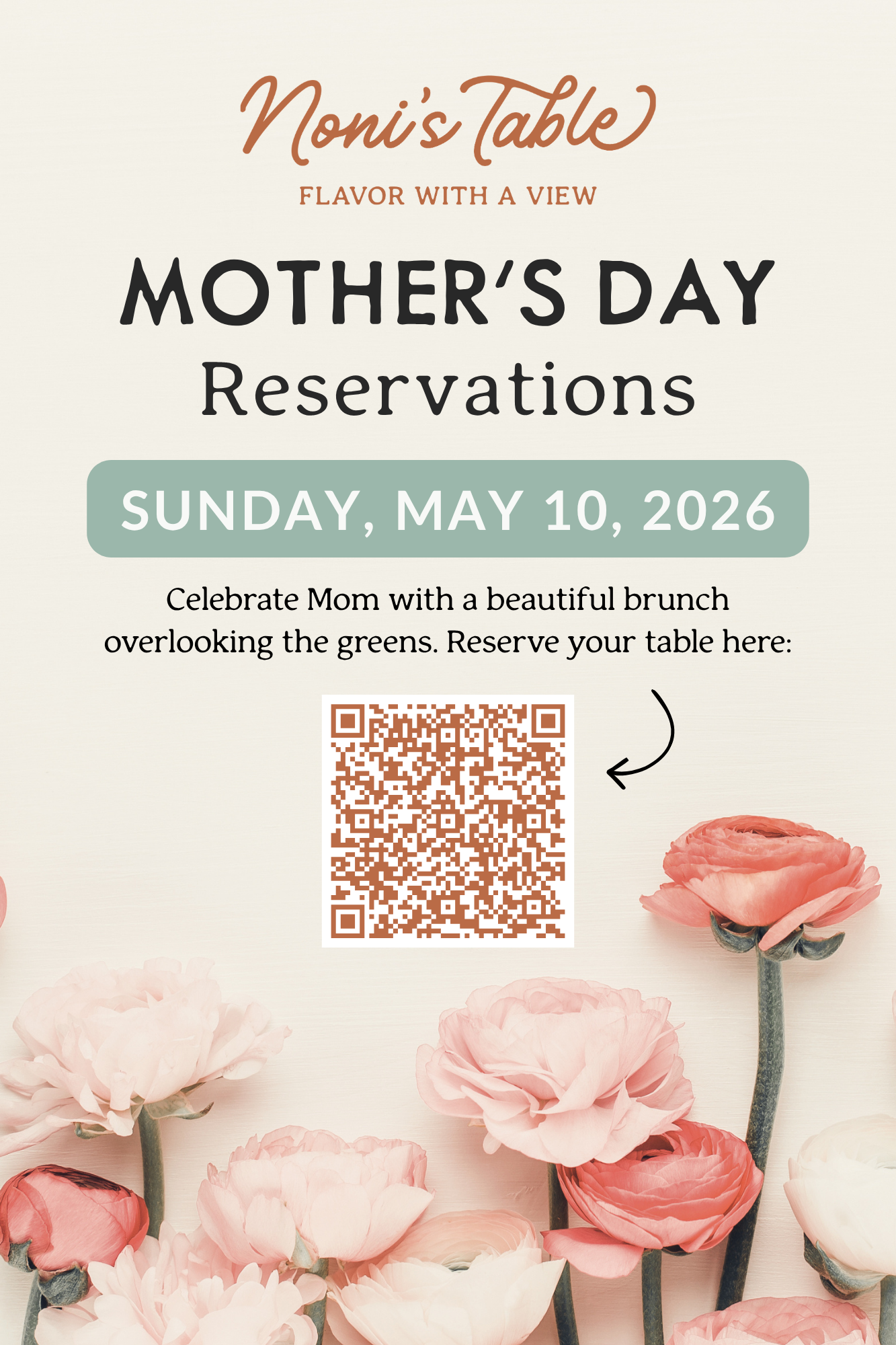 This Mother's Day, join us at Noni’s Table for a thoughtfully crafted menu, cozy café favorites, and relaxing views overlooking the greens. Make your reservations here: bit.ly/48UgdQt.